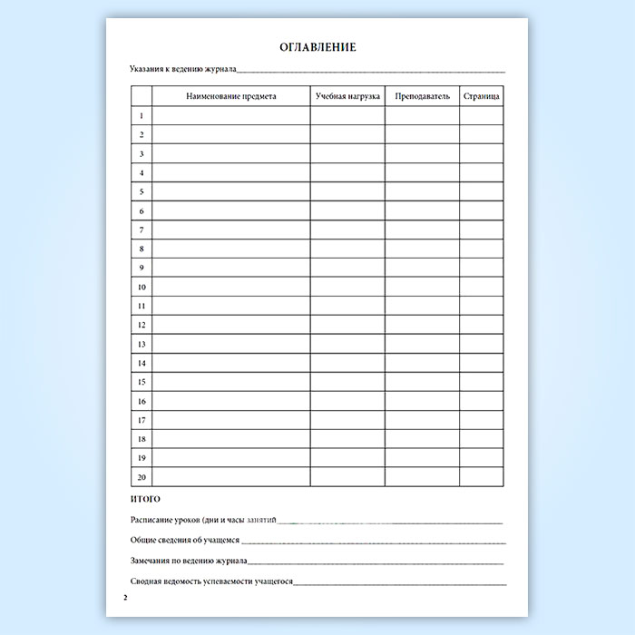 - Указания по ведению журнала