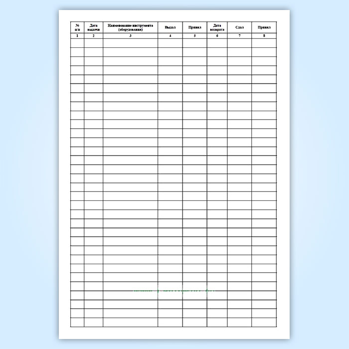 Вместо журнала учета и выдачи инструмента может использоваться журнал учета выдачи инструментов, который имеет аналогичные графы.