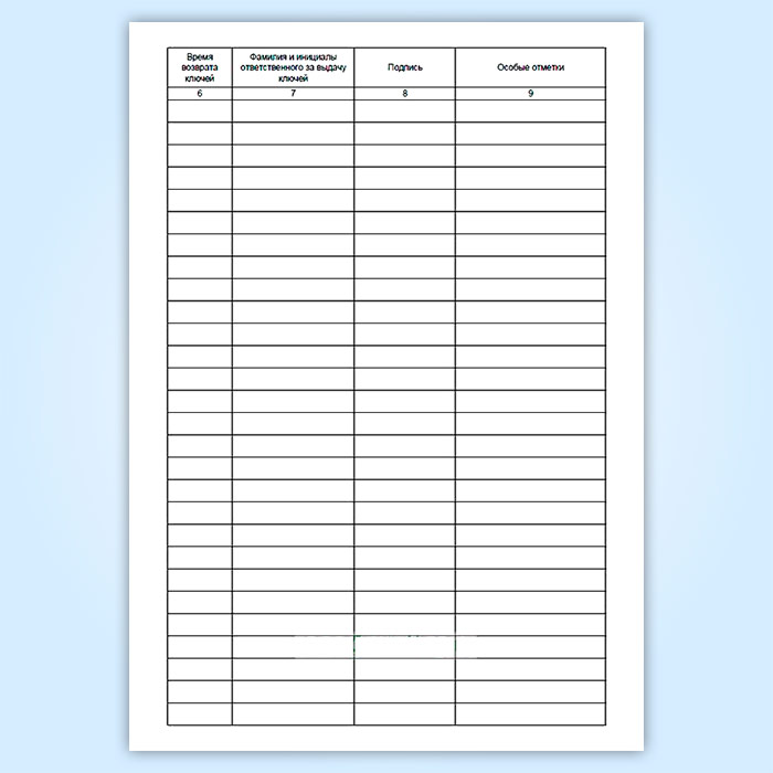 7. Фамилия и инициалы ответственного за выдачу ключей
