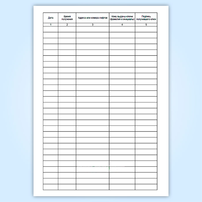 Журнал учета и выдачи ключей от машинных и блочных помещений лифта