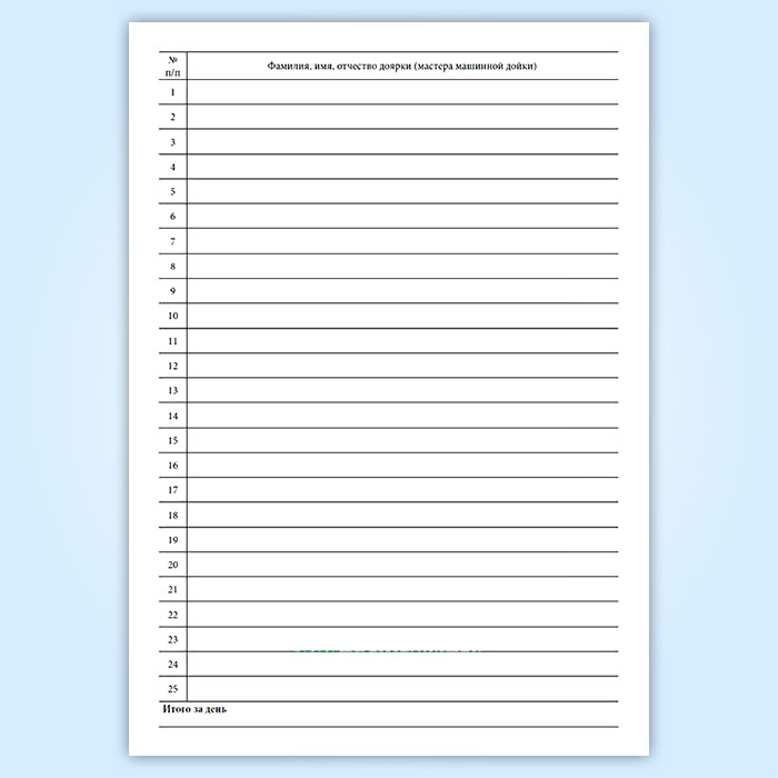 Подсчитанные итоги в журнале по вертикали дают сведения о надое молока за день, а итог по горизонтали - о количестве молока, надоенного каждой дояркой (мастером машинного доения) за отчетный период.