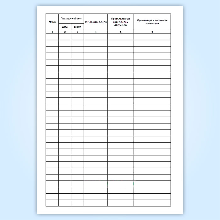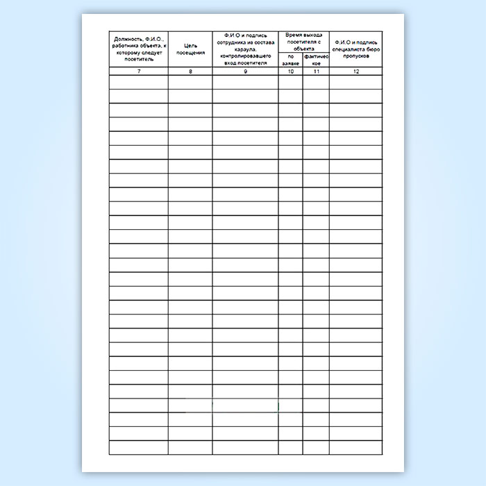 Графы (столбцы) журнала учета посетителей по разовым пропускам:
