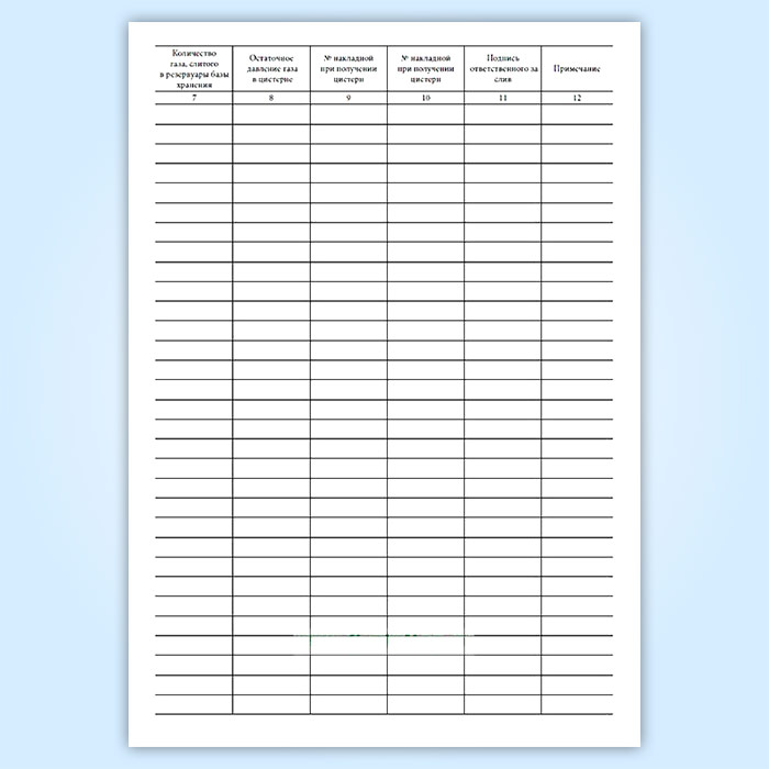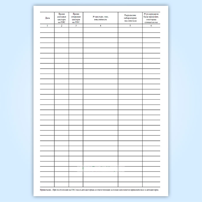 Примечание. При поступлении на ГНС газа в автоцистернах соответствующие колонки заполняются применительно к автоцистерне.