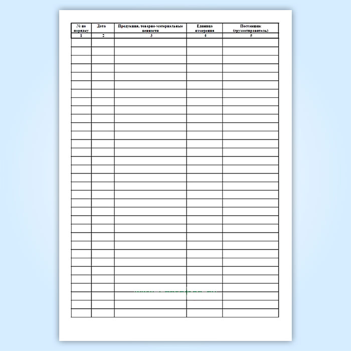 Журнал учета поступления продукции, товарно-материальных ценностей в места хранения (форма МХ-5)