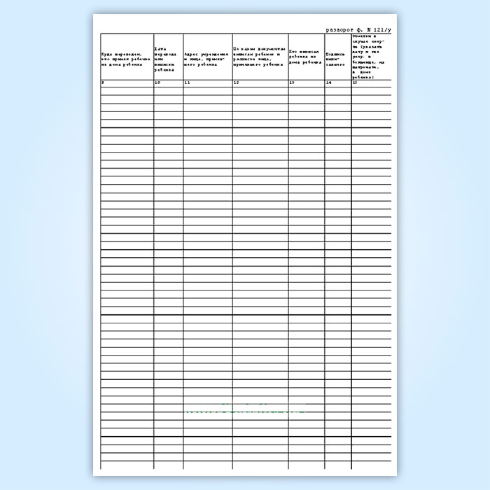 Графы журнала учета приема детей в дом ребенка (Форма 121/у):