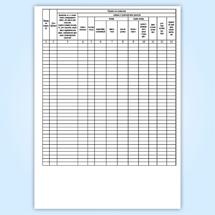 Журнал учета приема на комиссию и продажи транспортных средств (автомобилей, мотоциклов) и номерных узлов (агрегатов) (форма № КОМИС-8)