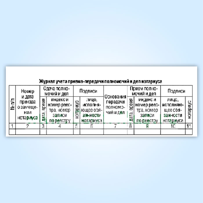 Журнал учета приема-передачи полномочий и дел нотариуса