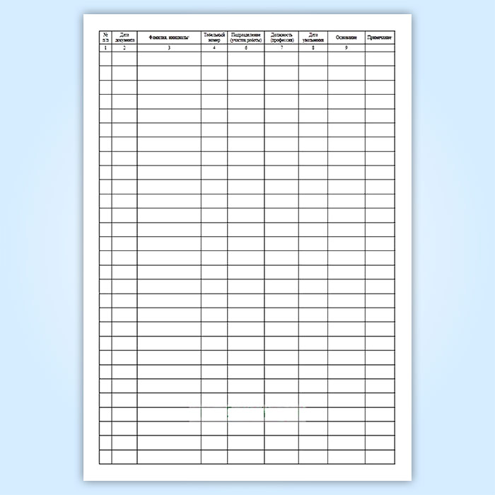 Для фиксации и оперативного поиска сведений о приказах (распоряжениях) об увольнении рекомендуется вести соответствующий журнал (книгу). На основе журнала (книги) можно получить следующие сведения: