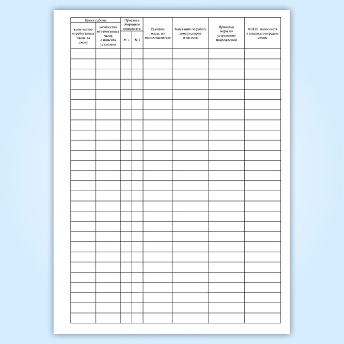 Для учета работы оборудования насосно-компрессорного отделения применяется данный журнал.