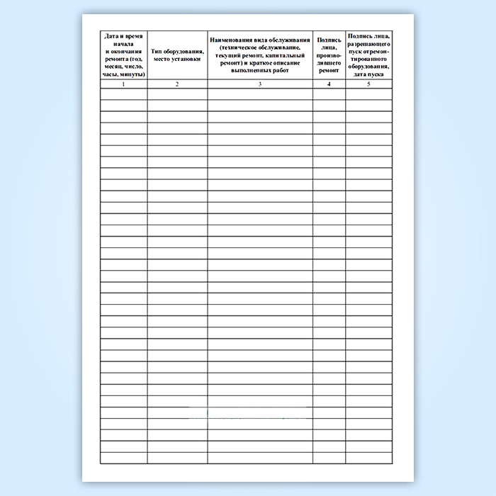 Графы журнала учета ремонта оборудования: