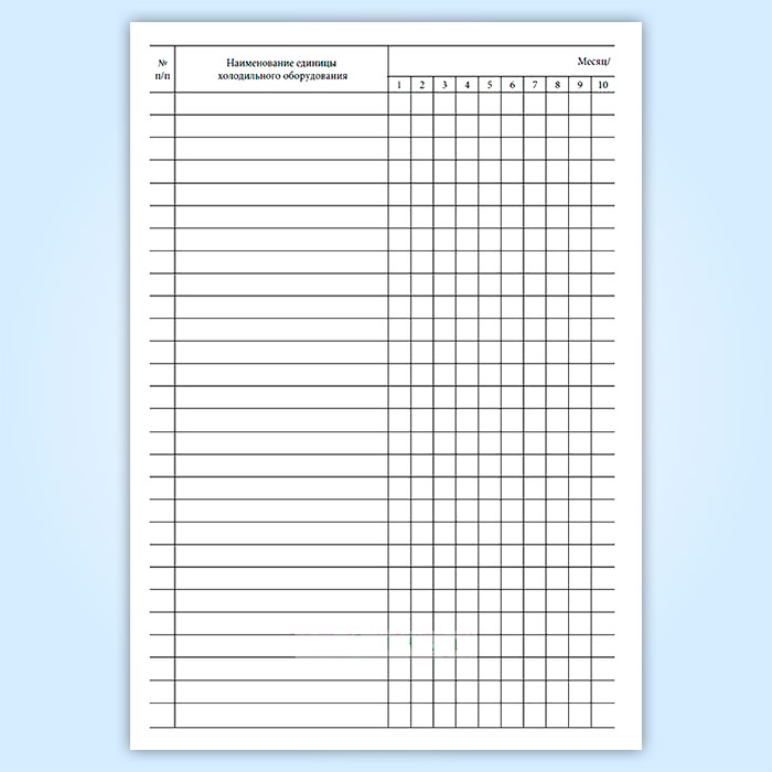 Журнал учета температурного режима в холодильном оборудовании