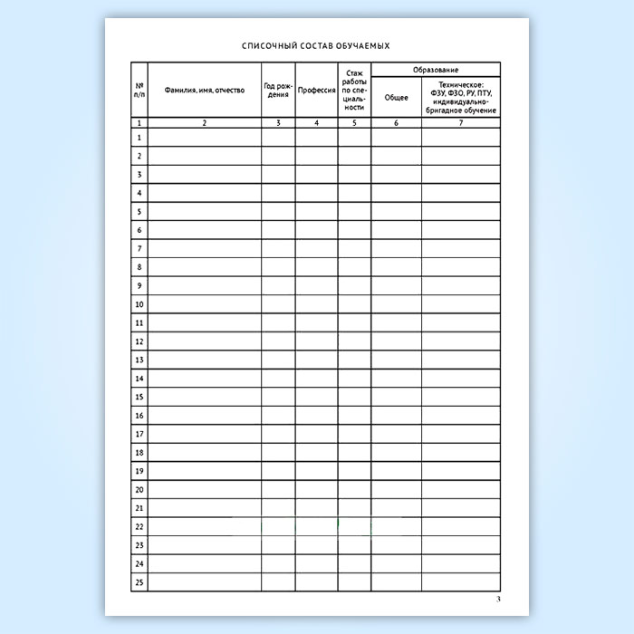 См. также Журнал учета теоретического обучения, графы которого отличаются.