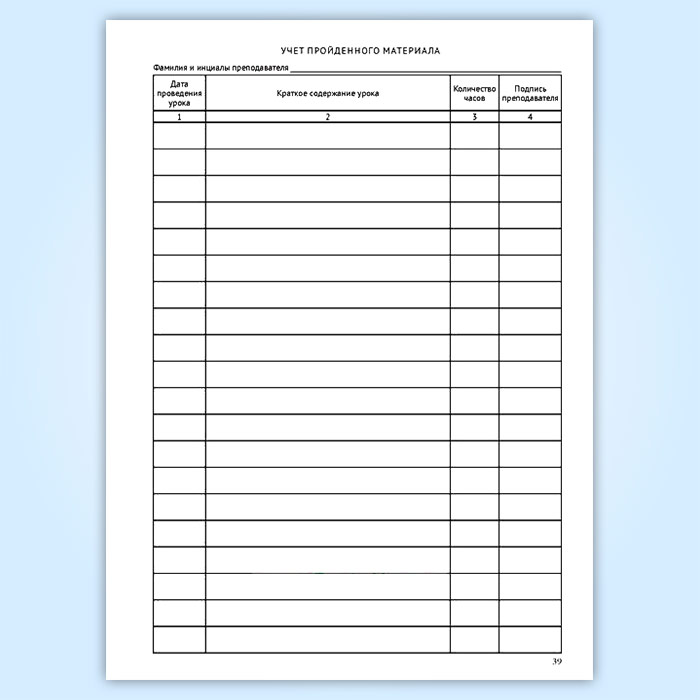 Журналы заполняются преподавателем дисциплины на специально отведенных под дисциплину страницах пастой синего или фиолетового цвета, четко и аккуратно.