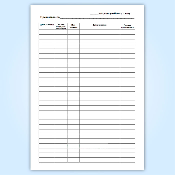 Журнал учета учебных занятий - предназначен для Вузов и имеет разделы: