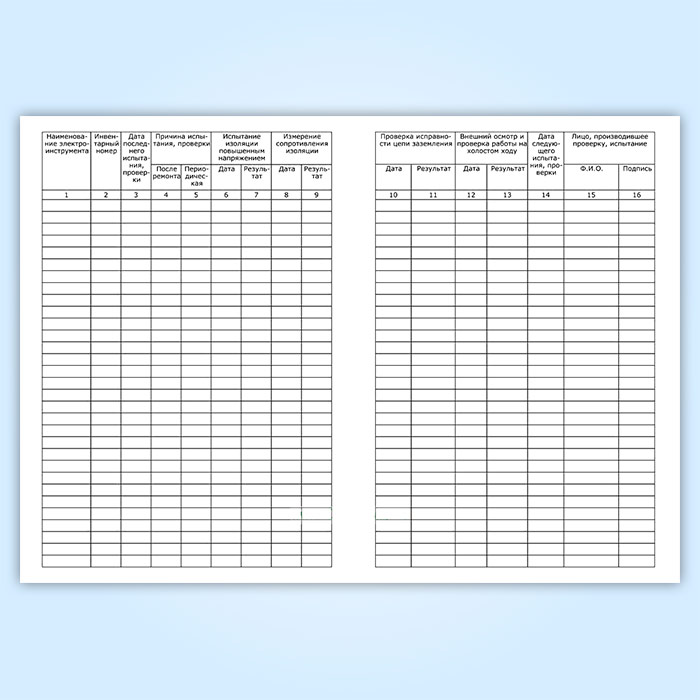 Ведение журнала учета проверки и испытаний электроинструмента и его вспомогательного оборудования (понижающих и разделительных трансформаторов, преобразователей частоты, защитно-отключающих устройств, кабелей-удлинителей и т.д.) и журнала осмотра пневматического инструмента.