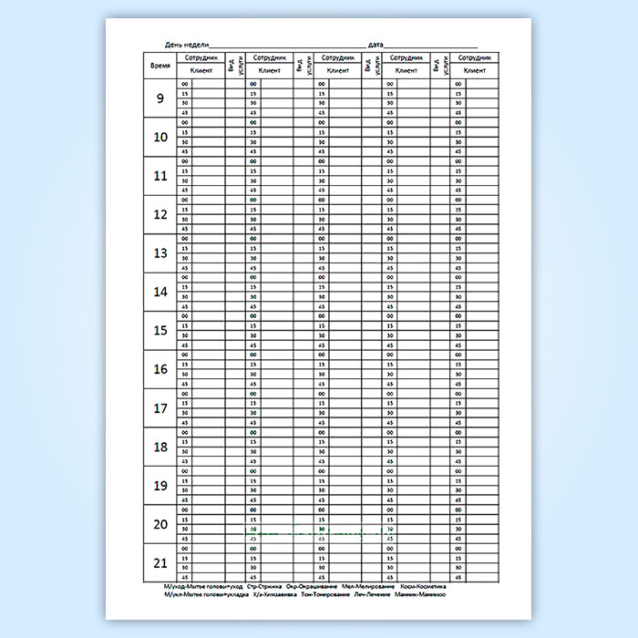 Клиентская книга салона красоты предназначена для записи посетителей салона на определенное время и дату с указанием вида услуги и обслуживающего мастера.