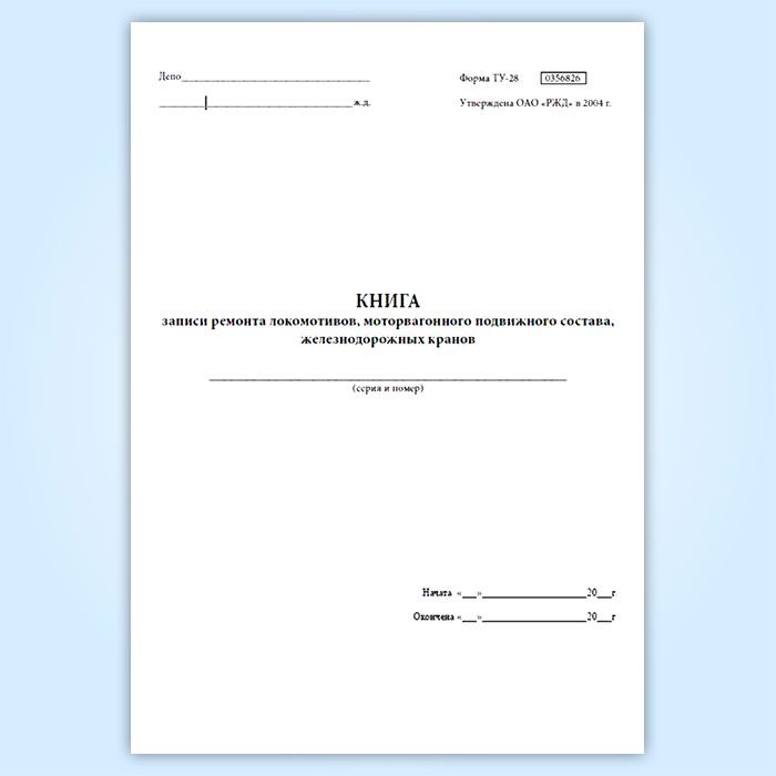 Книга записи ремонта локомотивов, моторвагонного подвижного состава железнодорожных кранов (ТУ-28)