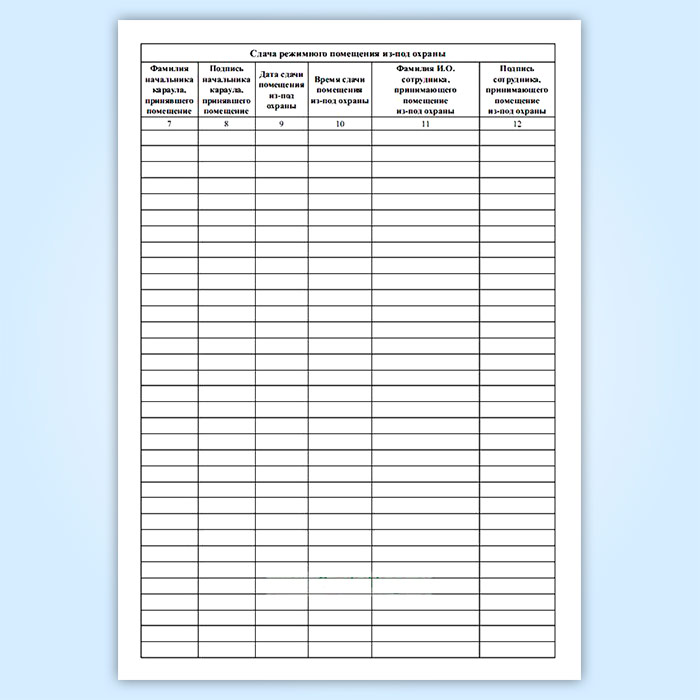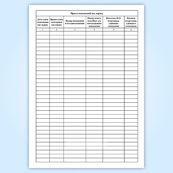 - Подпись сотрудника, принамающего помещение из-под охраны
