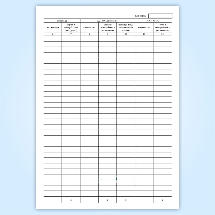 Графы книги учета бланков строгой отчетности (форма 0504045):