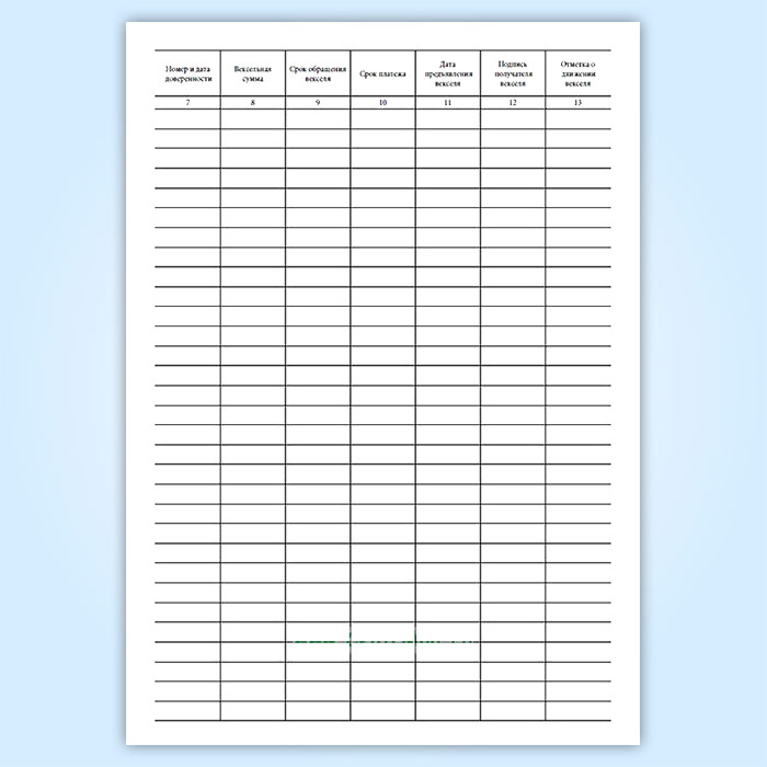 Книга учета векселей содержит следующие графы: