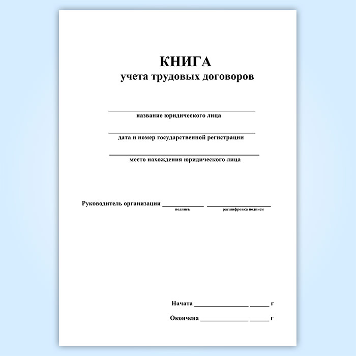 Строки для заполнения титульного листа книги учета трудовых договоров