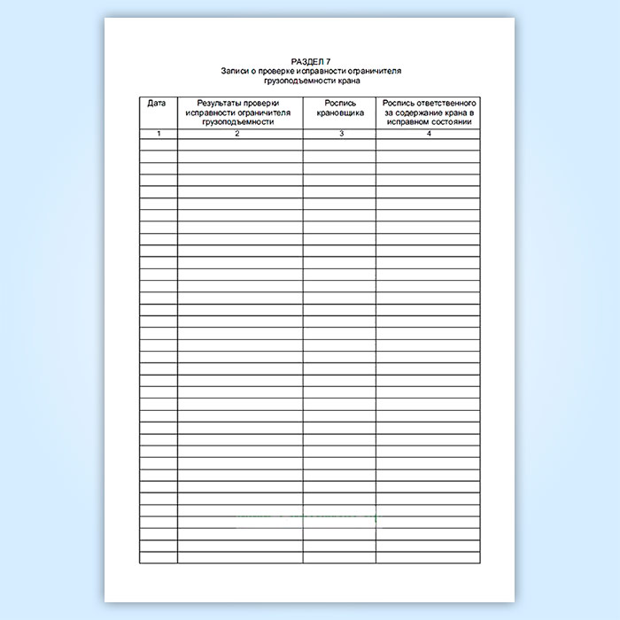 7. Ответственность за своевременное заполнение и правильное ведение журнала несет механик, в ведении которого находится кран.