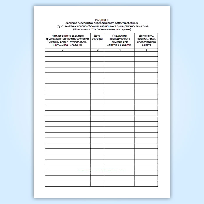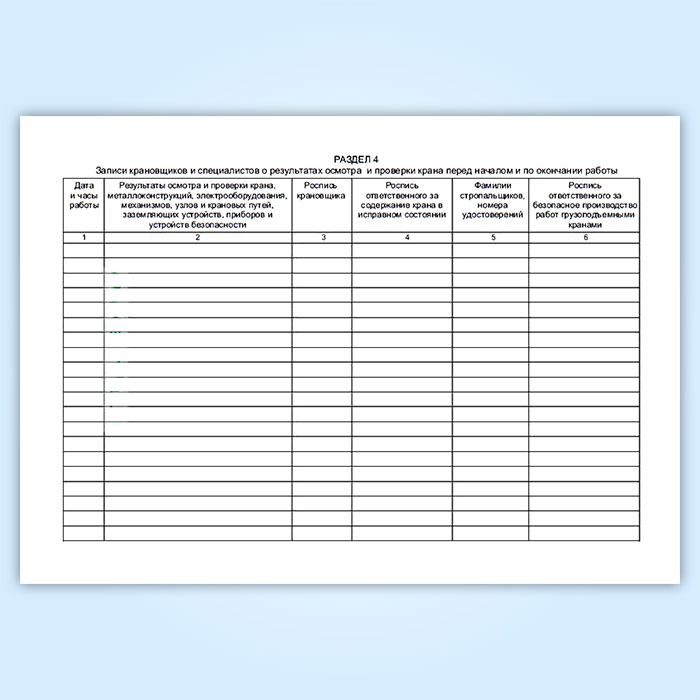 6. Ответственность за сохранность кранового журнала несет машинист башенного крана.