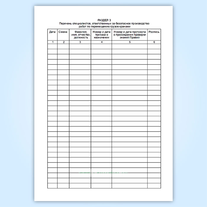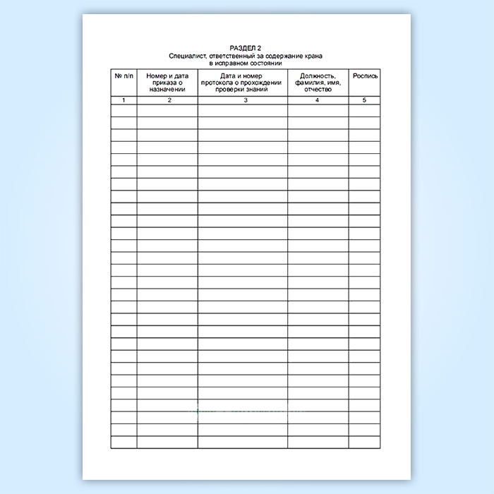 1. Раздел «Перечень лиц, ответственных за техническое состояние крана и его эксплуатацию» заполняет механик, в ведении которого находится кран. В графе «Дата сдачи» ставится число, месяц и год сдачи крана механишм с его подписью.