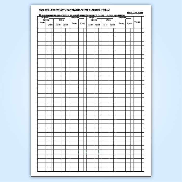 Оборотная ведомость по товарно-материальным счетам содержит следующие графы: