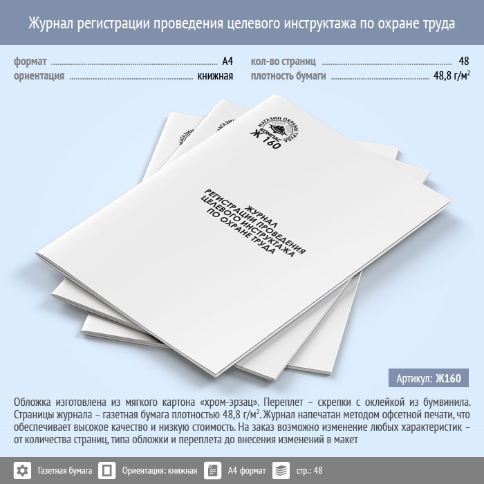 Журнал регистрации проведения целевого инструктажа по охране труда (48 стр., Ж160)