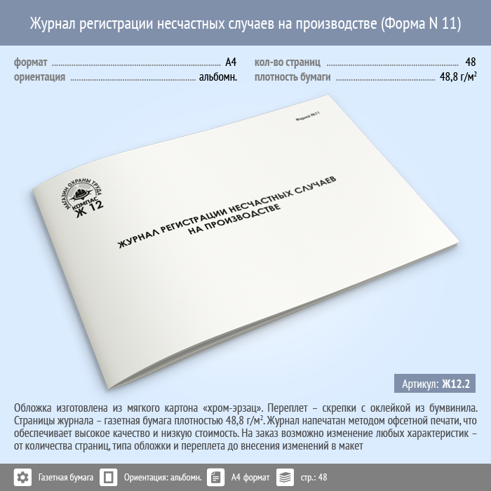 Журнал регистрации несчастных случаев на производстве (Форма N 11) (48 стр., Ж12.2)