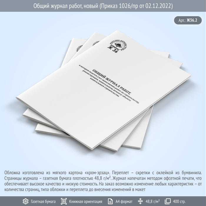 Общий журнал работ, новый (Приказ 1026/пр от 02.12.2022, 400 стр., Ж36.2)
