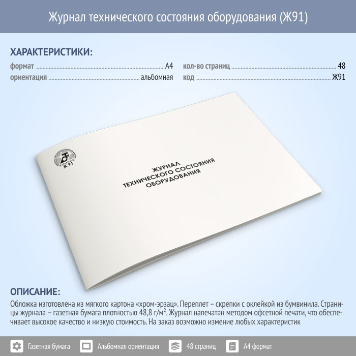 Журнал технического состояния оборудования (48 стр., Ж91)
