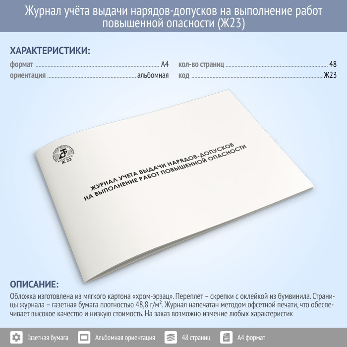 Журнал учета выдачи нарядов-допусков на выполнение работ повышенной опасности (48 стр., Ж23)