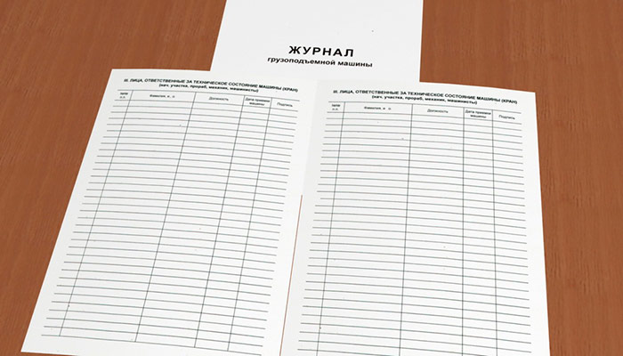 Ответственность за своевременное заполнение и правильное ведение Журнала грузоподъемной машины несет машинист и ответственный за исправное состояние