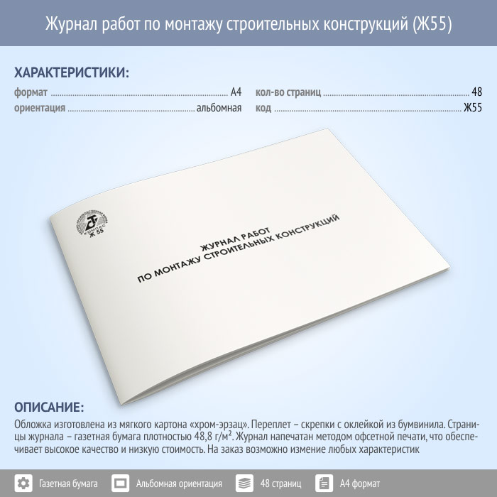 Журнал работ по монтажу строительных конструкций (48 стр., Ж55)