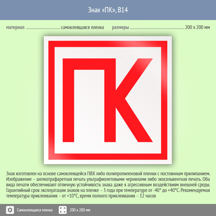 Знак «ПК» имеет размер 200х200 мм