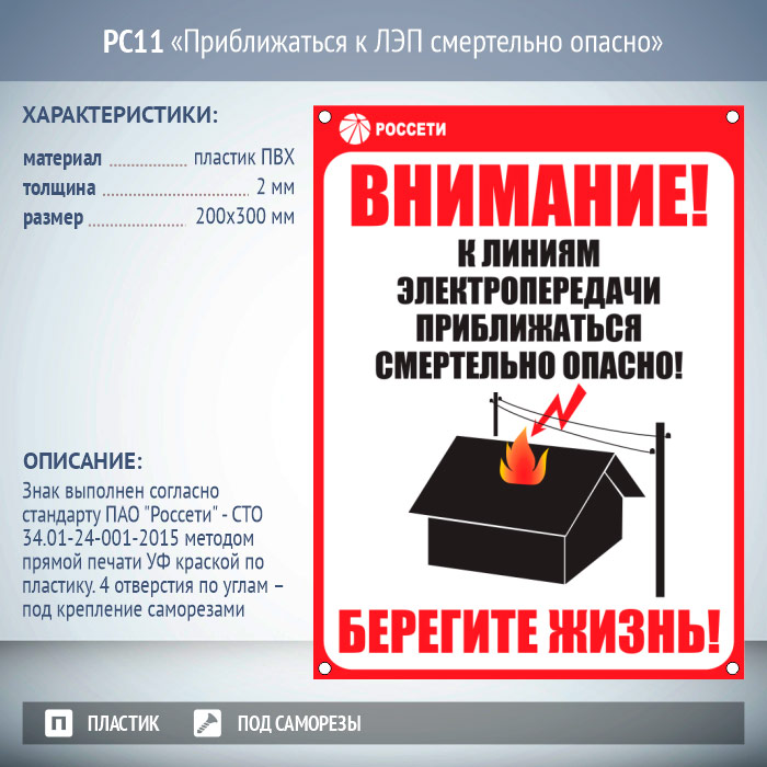 Знак «Приближаться к ЛЭП смертельно опасно», PC11