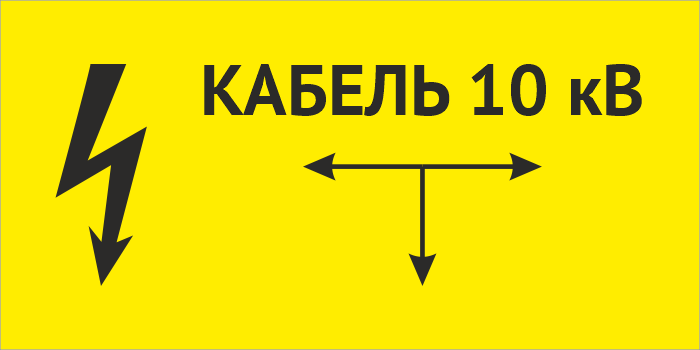 Табличка «Кабель 10 кВ», OZK-12 на металле, размером 300х150 мм устанавливается для обозначения зоны залегания кабеля в местах его пересечения с автомобильной дорогой и другими коммуникациями. Знак должен быть установлен на определенном расстоянии от земли – на высоте человеческого роста (1,7 м). На нем обязательно размещение таких данных, как адрес и телефон эксплуатирующего линию предприятия, размеры охранной зоны