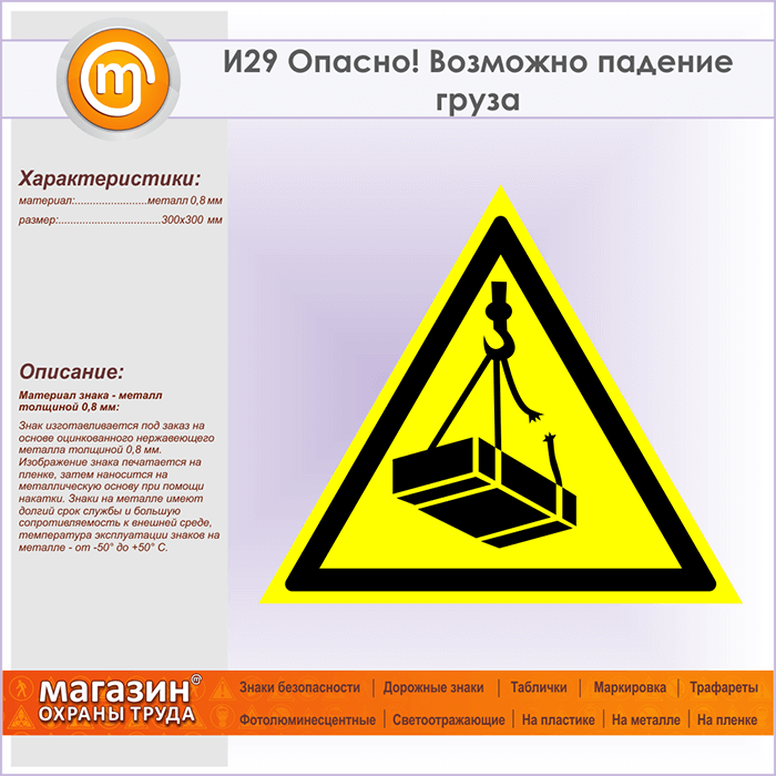 Знак «Опасно! Возможно падение груза», И29 (металл, сторона 300 мм)