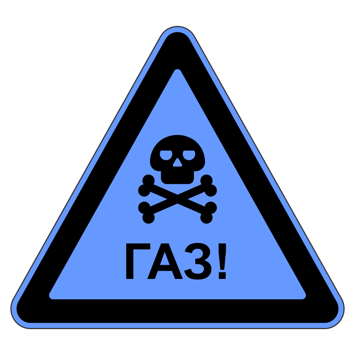 Знак «Газ!» устанавливается на местах утечки газа и в зонах загазованности атмосферы совместно со знаком «С огнем не приближаться!»