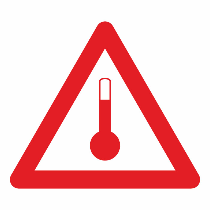 Наклейка «Перевозка при повышенной температуре» (пленка ламинированная, сторона 250 мм)