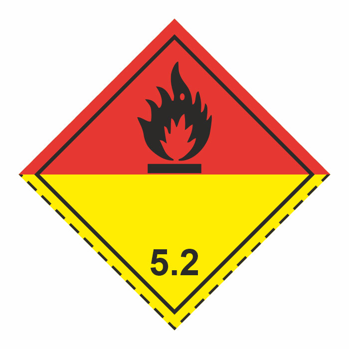 Знак перевозки опасных грузов «Класс 5.2. Органические пероксиды» (светоотражающий металл, 250х250 мм)
