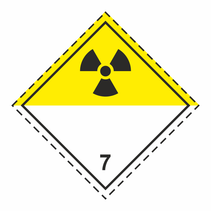 Знак перевозки опасных грузов «Класс 7. Радиоактивные материалы» должен крепиться на транспортные средства, перевозящие радиоактивные материалы - 2 комплекта по бокам и 1 сзади (согласно пп. 5.3.1.4.1 главы 5.3 ДОПОГ)