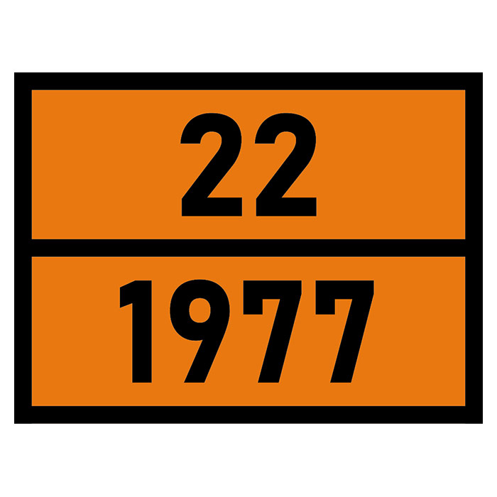 Табличка «Опасный груз 22-1977», Азот жидкий – знак опасности оранжевого цвета с идентификационным номером, определенным ООН и указывающим на класс и вид вещества. Материал: пленка, размеры: 400х300 мм. Устанавливается на транспортное средство с целью информирования и обеспечения безопасности при перевозке опасных грузов. На автомобиле должно быть установлено две таблички: одна спереди, вторая сзади.