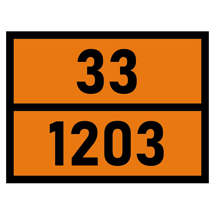 Табличка «Опасный груз 33-1203», Бензин – знак опасности оранжевого цвета с идентификационным номером, определенным ООН и указывающим на класс и вид вещества. Материал: светоотражающий металл, размеры: 400х300 мм. Устанавливается на транспортное средство с целью информирования и обеспечения безопасности при перевозке опасных грузов. На автомобиле должно быть установлено две таблички: одна спереди, вторая сзади.