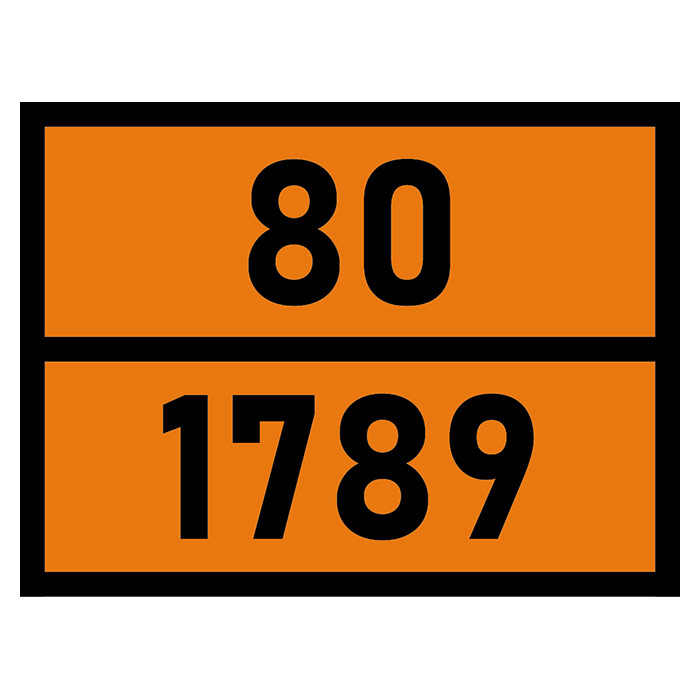 Табличка «Опасный груз 80-1789», Соляная кислота может быть изготовлена на обычной и светоотражающей пленке, а также на светоотражающем маталле с рельефом и без. Возможна дополнительная ламинация всех знаков кроме рельефных.