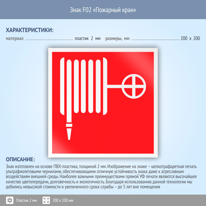 Знак F02 «Пожарный кран» (пластик, 200х200 мм)