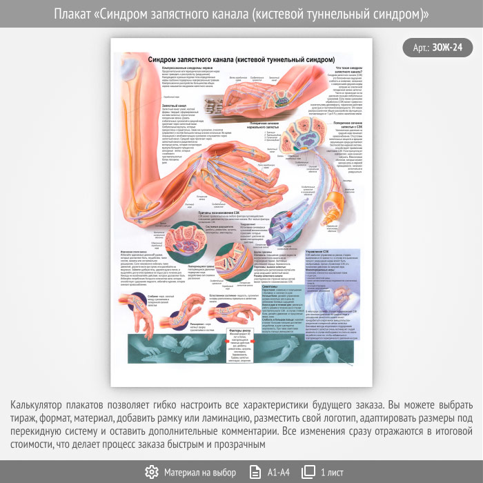 Плакат «Синдром запястного канала (кистевой туннельный синдром)» (ЗОЖ-24, 1 лист)