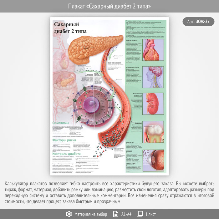 Плакат «Сахарный диабет 2 типа» (ЗОЖ-27, 1 лист)